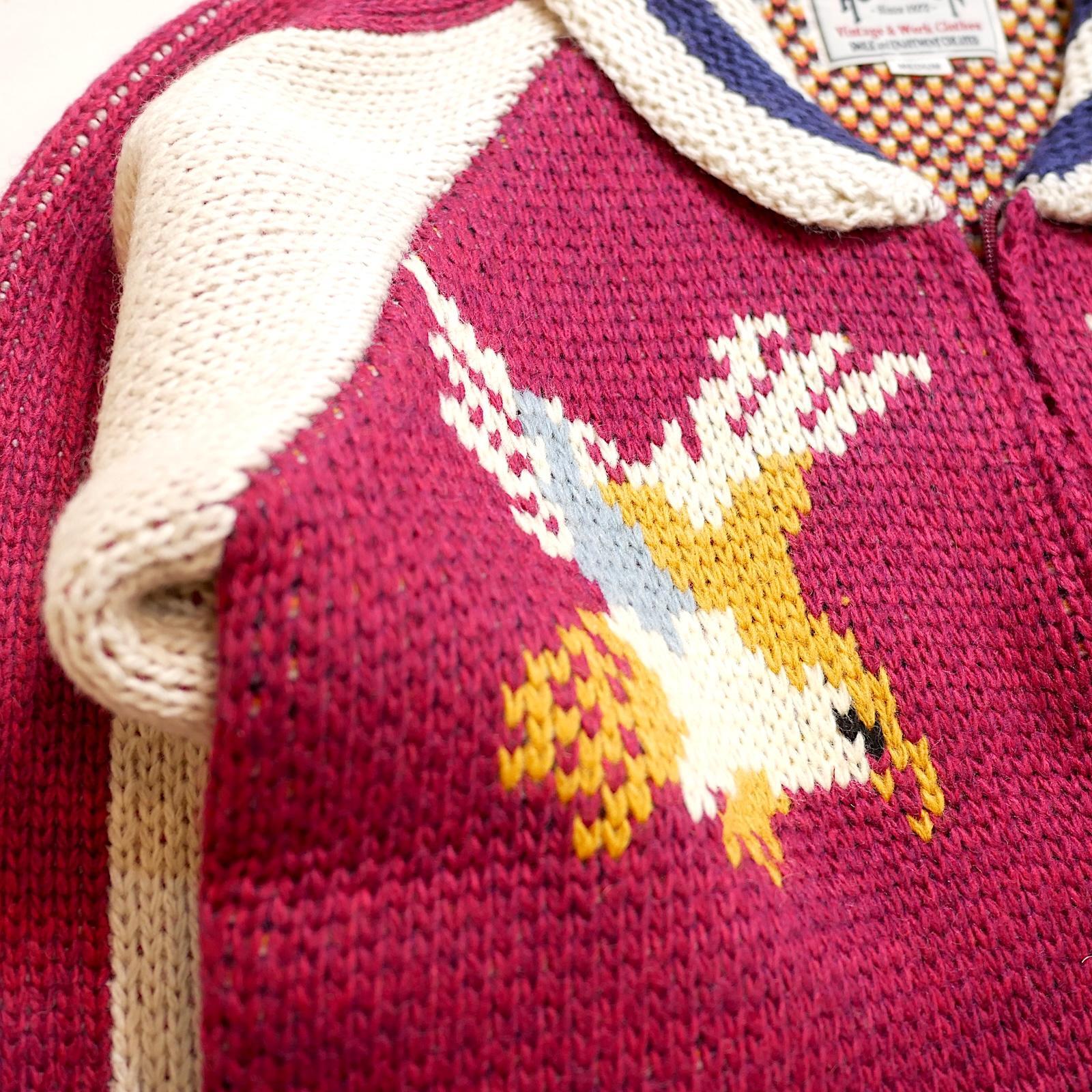 デフォルメされた鷹柄が可愛らしい仕上がりで、アメカジニットへの仲間入りを可能にしてくれる。