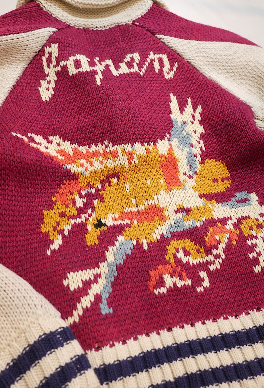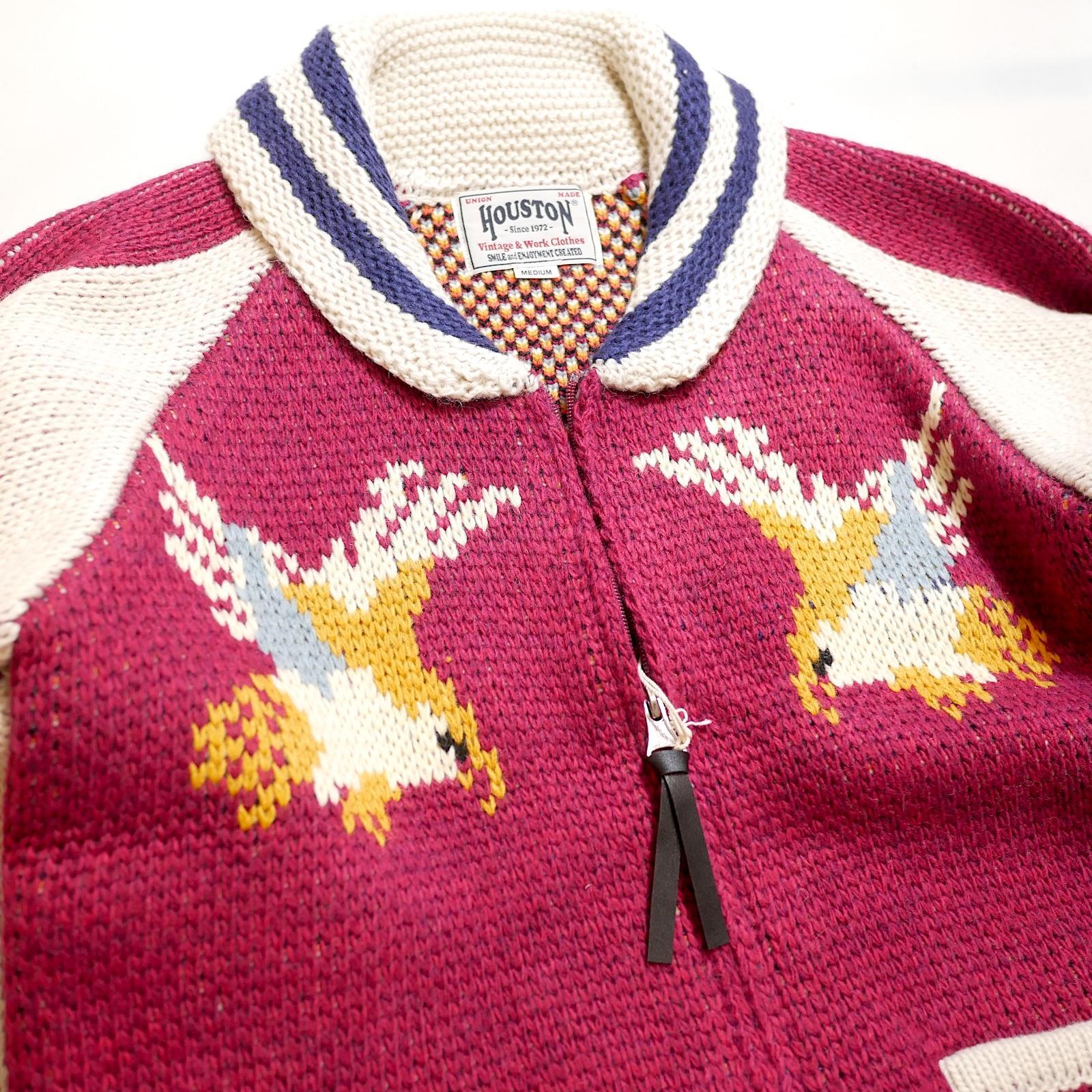 HOUSTONが得意とするスカジャンをカウチンニットに落とし込んだカーディガン。