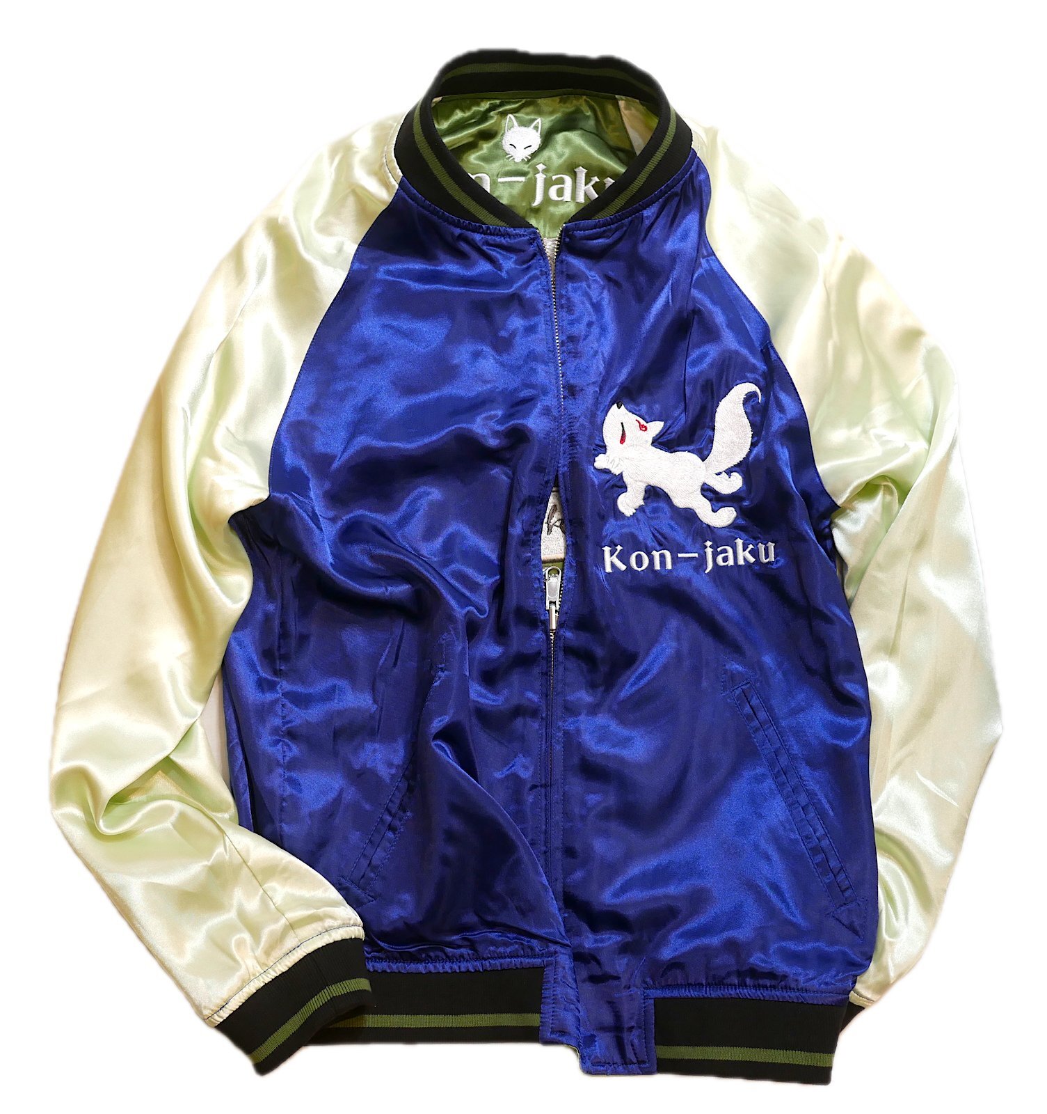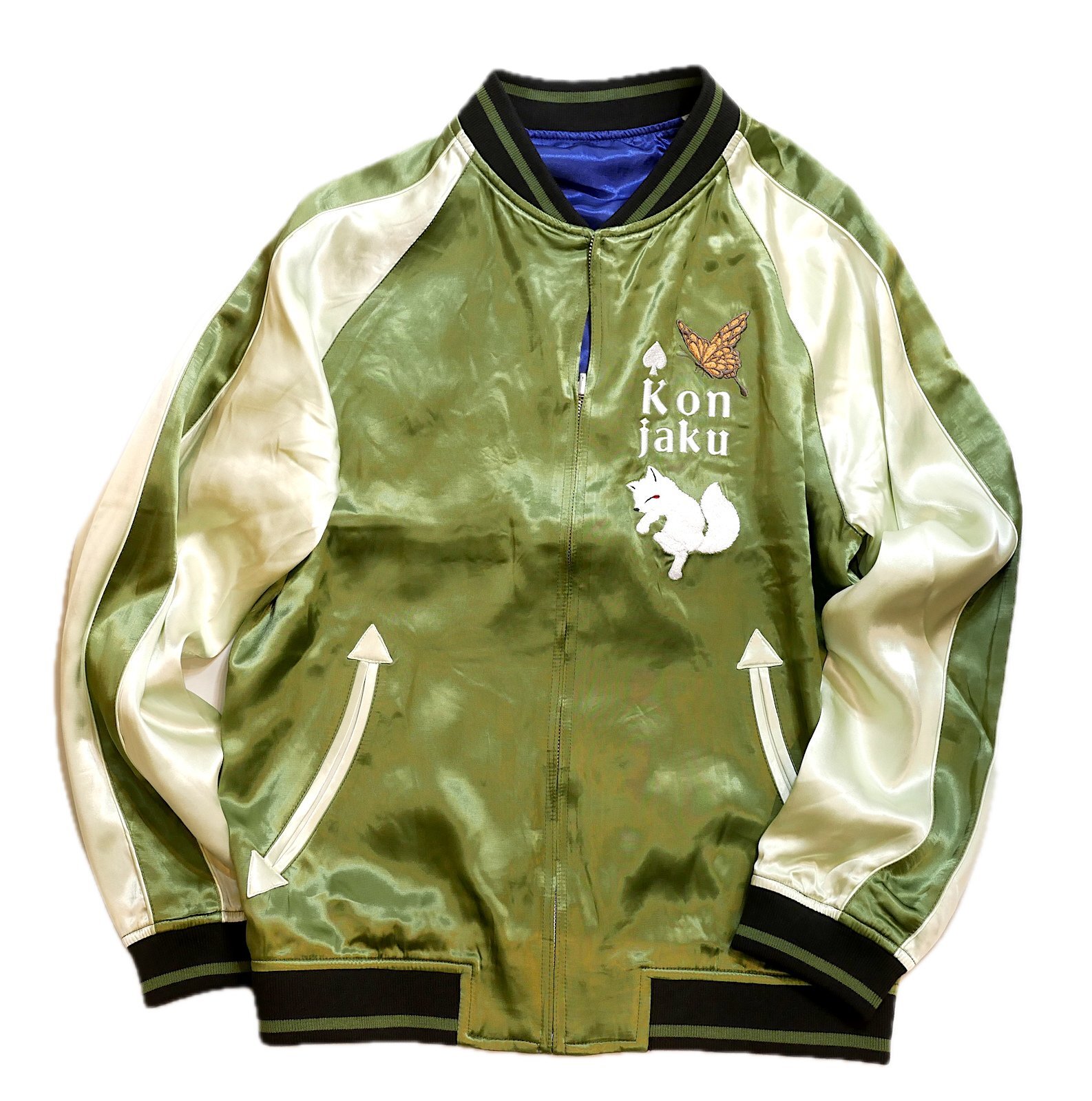 今昔 -KON-JAKU- [ Great Fox King ] 総刺繍 リバーシブルスカジャン KJ-29262 グリーン×オフホワイト