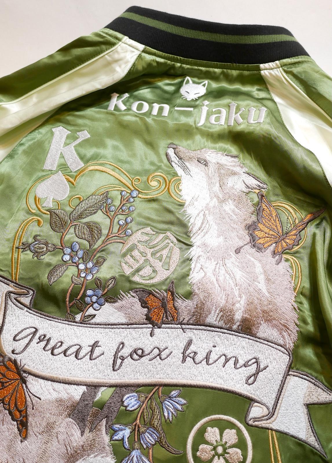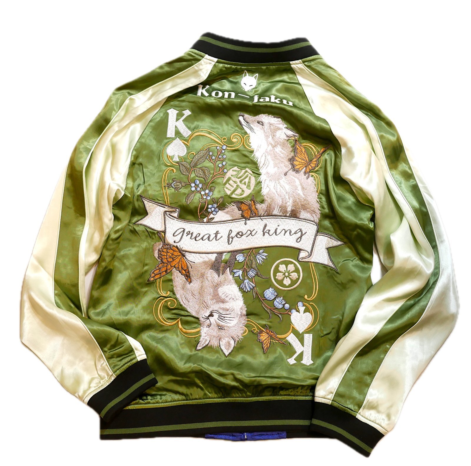 今昔 -KON-JAKU- [ Great Fox King ] 総刺繍 リバーシブルスカジャン KJ-29262 グリーン×オフホワイト [KJ-29262]