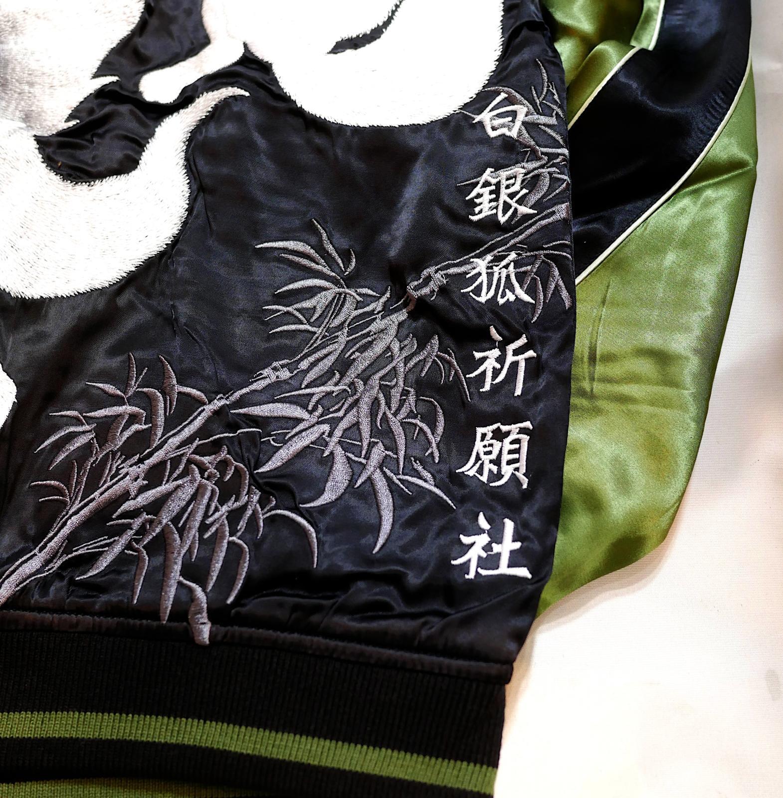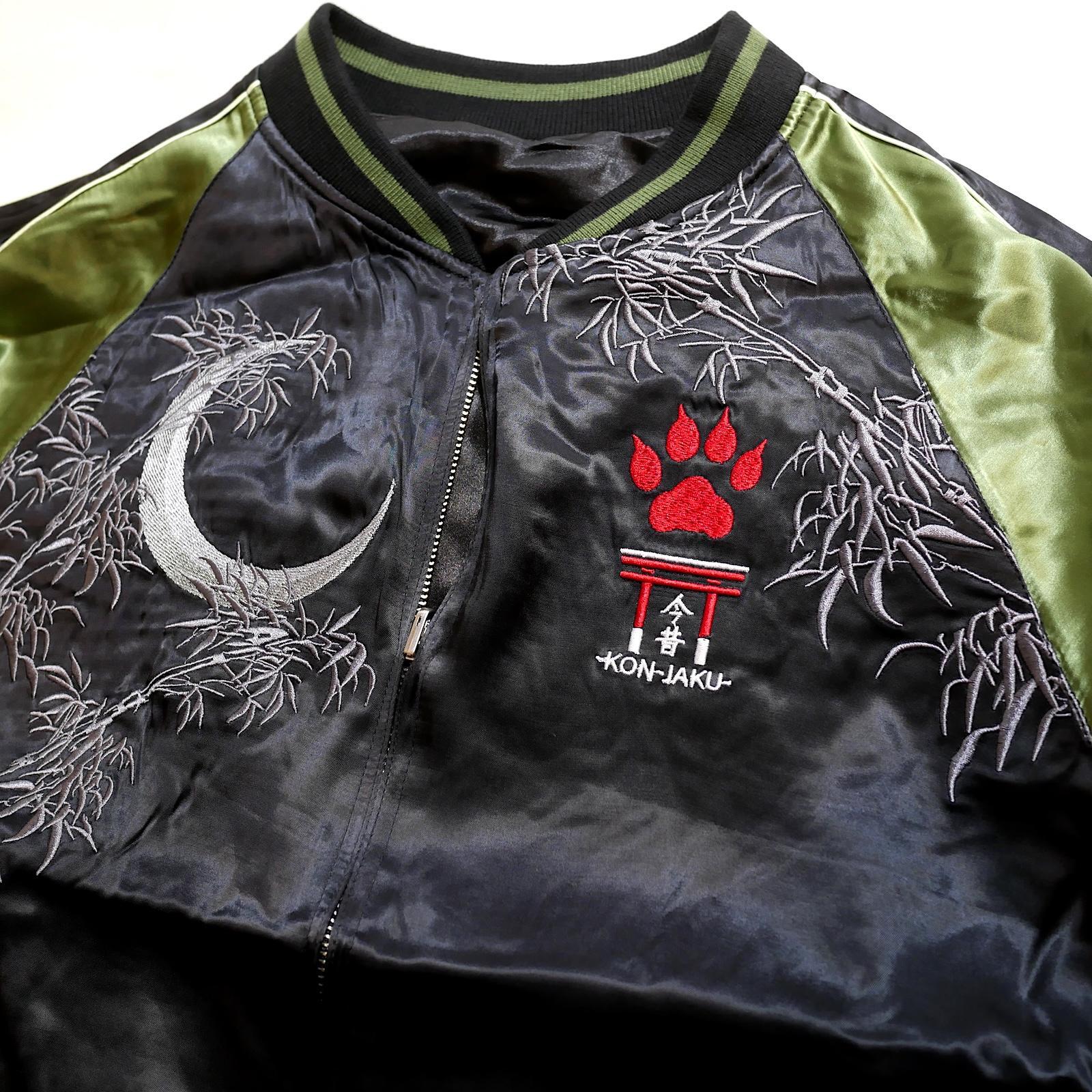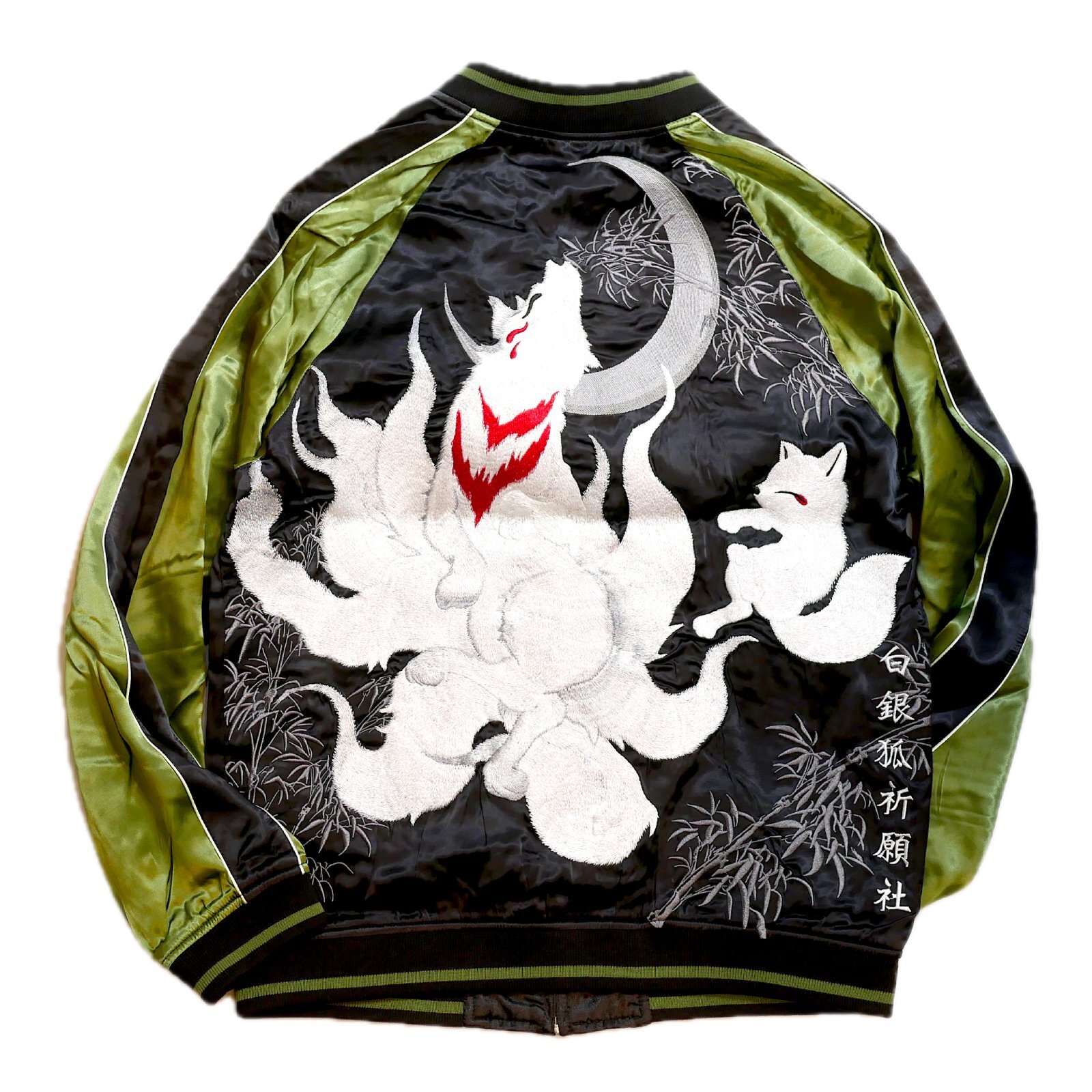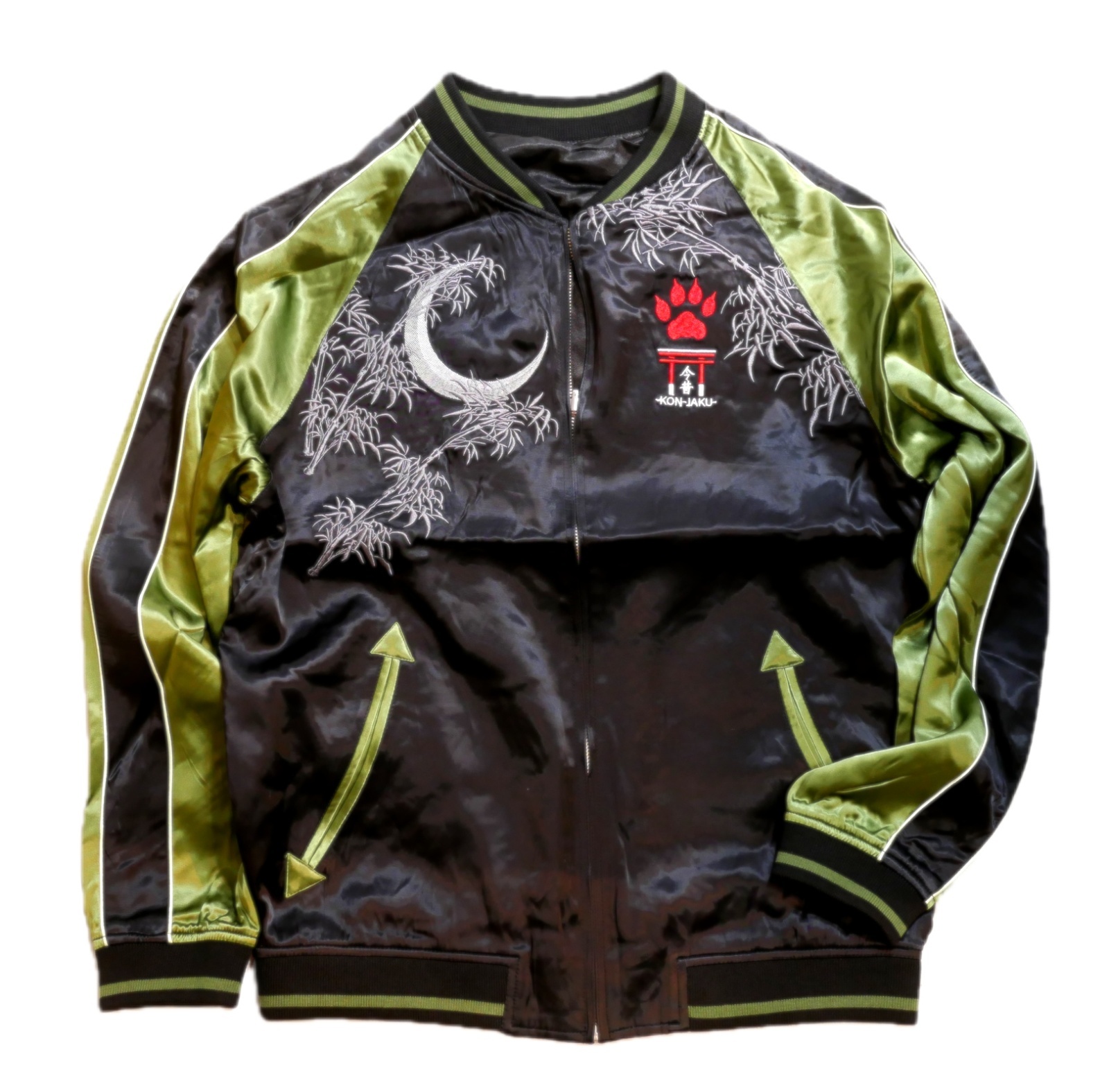 今昔 -KON-JAKU- [ 九尾狐 ] 総刺繍 リバーシブルスカジャン KJ-260078 ブラック×グリーン [KJ-260078]