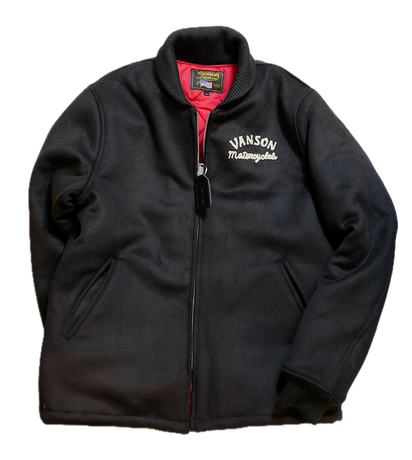 VANSON (バンソン) メルトンジャケット チェーン刺繍 (VANSONオフシャル商品シリアルNo入り) NVJK-2505 ブラック